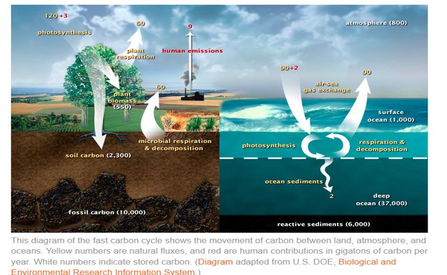 The following diagram from the article illustrates both the slow and the fast cycles of carbon: