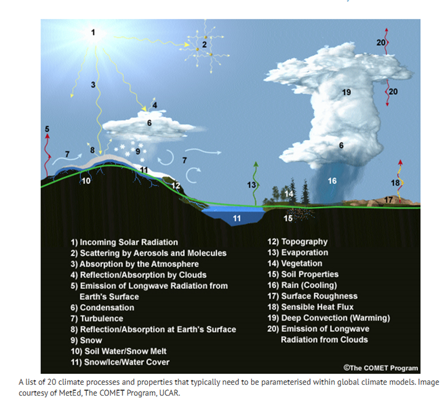 .. The graphic below shows some of the processes that are typically parameterised in models.