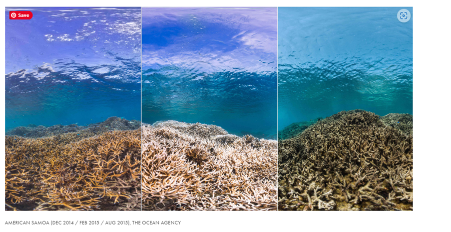 ii) Tipping Points? – Corals can and do recover from heating events (marine heatwaves) but as elevated sea temperatures become more frequent and last longer, coral mortality rates increase. This proceeds until a tipping point is reached where mass bleaching events occur where massive swathes of coral die such as happened along Australia’s great barrier reef in 1998, 2002, 2016, 2017, 2020 and 2022; as can be seen from the years in which this occurred, the frequency of such events are increasing.